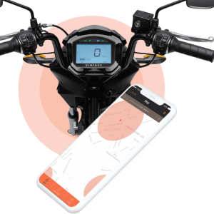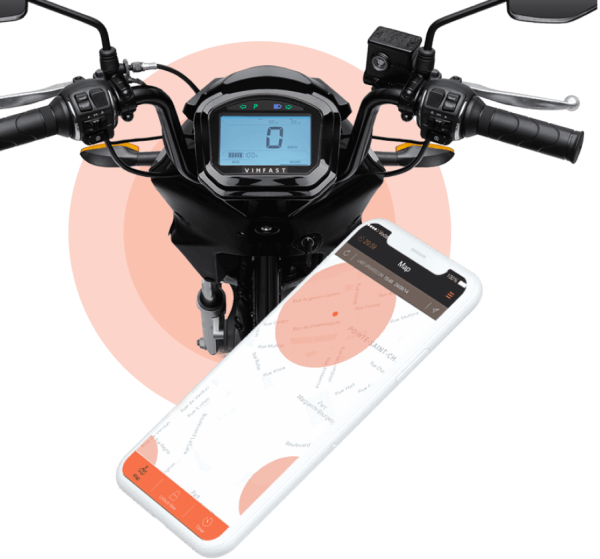 - Tích hợp hệ thống định vị GPS và kết nối với ứng dụng di động VinFast E-Scooter để theo dõi trạng thái xe, kiểm tra dung lượng pin và tìm kiếm xe trong bãi đỗ.